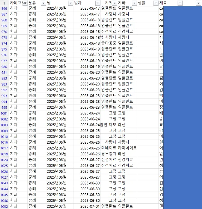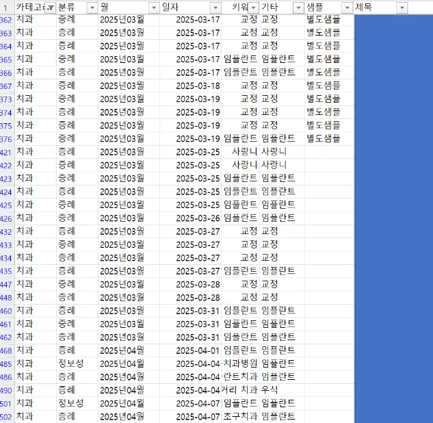 간단한 가이드라인 작성 (키워드/주제/방향/예시URL/치과 치료 과정 등)