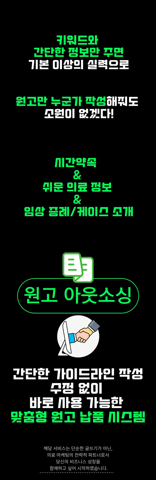 “시간 부족과 매출 걱정, 이제 그만! 치과 전문 원고로 시간 절약하고 매출을 빠르게 성장시키세요!”